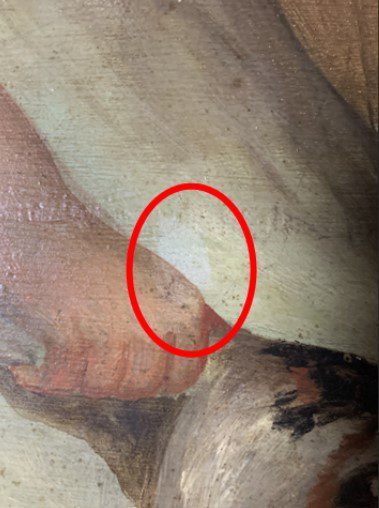 This fantastic example of early Kentucky portrait painting deserves its rightful place in the Kentucky gallery. This is a straightforward treatment that involves the removal of a decades-old resin-based varnish, as well as many, many black fly specks. Yuck! It’s gross but necessary. There are a few areas of mismatched retouching, where someone went in years ago and tried to freshen up a few areas along the seams of the panel, but this painting has been left alone over the centuries, which bodes well for a full treatment in the laboratory, and a significantly improved appearance.
